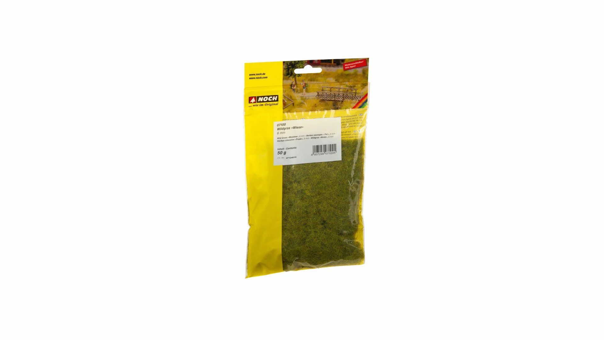 L’erba selvatica lunga 6 mm è ideale per la progettazione realistica di aree di erba alta, campi, aree sponde e argini. La fibra dell’erba può essere lavorata in modo ottimale con il Gras-Master. Confezionato in un sacchetto a prova di ribaltamento con una “fascia addominale” – niente più fuoriuscite! Puoi ottenere un effetto particolarmente realistico mescolando erba selvatica con erba di campo ed erba sparsa.