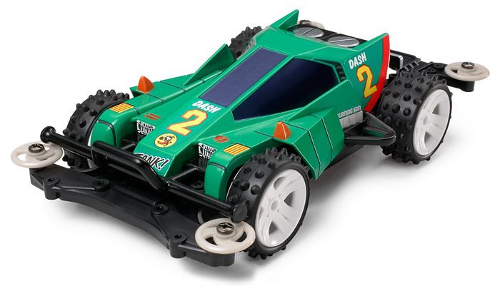 Questo kit di montaggio ti regalerà un sacco di divertimento correndo con questa macchina Mini 4WD PRO ad alte prestazioni. Il motore a doppio albero posizionato centralmente trasmette efficacemente la potenza a tutte e quattro le ruote per prestazioni ottimali. Il telaio “One-Touch” in tre pezzi non richiede colla ed è un gioco da ragazzi da montare. Ti godrai la velocità di questa macchina e la sua ampia scelta di impostazioni. La forma robusta della macchina preferita di Tankuro, la Dash-2 Burning Sun, è ancora popolare tra i fan oggi. Il potente stile corazzato di questa macchina è stato disposto sull’altrettanto impressionante telaio MS. Sono impiegati pneumatici pin spike e un’unità anteriore N-02. Inoltre, come visto nella rivista di fumetti, la barra paraurti anteriore è inclusa per uso espositivo.