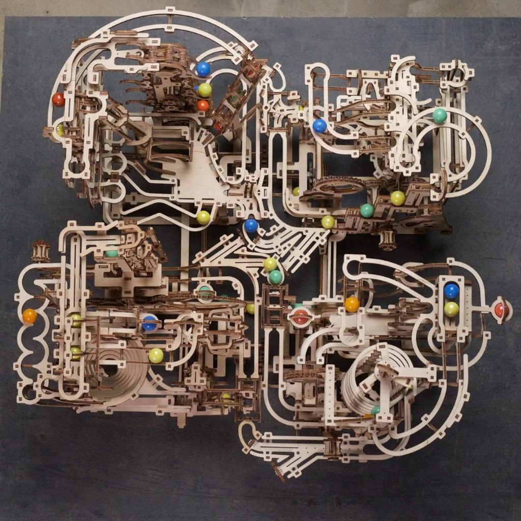attraverso vari ostacoli, per ore e ore. Le piste per biglie sono affascinanti, catturano la nostra attenzione, eppure sono anche rilassanti. Le corse e le biglie sono diventate un fenomeno inaspettato di YouTube, con migliaia di video che accumulano milioni di visualizzazioni. Scegli una biglia da guardare, per cui tifare, ti chiedi quale strada prenderà, ti metti al posto della biglia, immaginando di essere proprio lì con la palla di vetro, in un viaggio meraviglioso, sconosciuto, con colpi di scena e sorprese dietro ogni angolo. L’emozione è ancora più grande quando hai costruito tu stesso la pista. Ora non stai solo guardando passivamente un video, sei completamente immerso perché hai costruito una macchina meravigliosa con le tue mani.