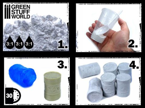 Sviluppata con una formula speciale, è il prodotto perfetto da utilizzare con stampi. La sua capacità di imprimere ogni dettaglio e la resistenza naturale dei pezzi prodotti la rende ideale per creare elementi scenici per giochi di guerra, design ferroviario, basi o diorami. Facile da scolpire, levigare, verniciare e incollare una volta asciutta.