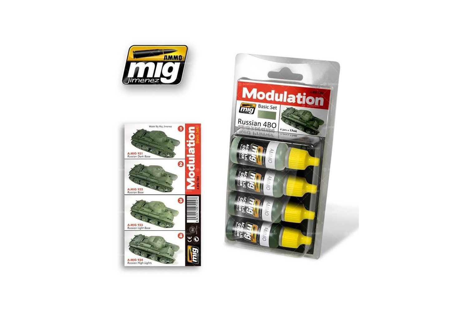 Questo set include 4 colori acrilici per dipingere modulazioni ed effetti di luce su qualsiasi veicolo sovietico nel colore 4BO in modo rapido e semplice. Questo set semplificato include i colori necessari per questa tecnica, risparmiando complessità e vasetti inutili. Con questi 4 colori il modellatore può utilizzare questa tecnica avanzata senza la necessità di miscele complicate e avendo sempre i colori utilizzati in ogni fase del processo. Questi acrilici e sono formulati per la massima resa sia con pennello che con aerografo. 4 colori in vasetti da 17 ml. Solubile in acqua, inodore e non tossico. Agitare bene prima di ogni utilizzo. Ogni barattolo include un agitatore in acciaio inossidabile per facilitare la miscelazione. Consigliamo MIG -2000 Diluente Acrilico per una corretta diluizione. Asciuga completamente in 24 ore.