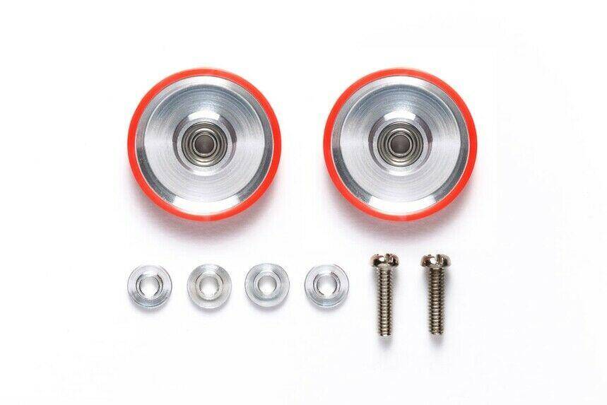 95580 – mini 4WD – 17mm Aluminum Rollers (Dish Type) w/Plastic Rings (RED) – TAMIYA