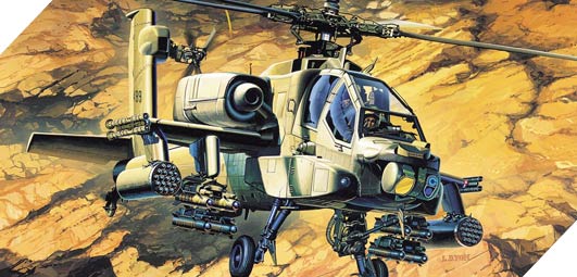 L’elicottero McDonnell-Douglas (Boeing) AH-64 è stato selezionato come vincitore nella competizione con lo YAH-63 di Bell nel dicembre 1976. Il nome Apache è rimasto sull’elicottero nel 1981. Questa macchina altamente efficiente ha rotori a quattro pale azionati da due motori a turbina General Electric T700-701 con una capacità di 1696 HP. Le ali vestigiali sono dotate di alette convenzionali del bordo d’uscita e una coda a piastra migliora la sterzata longitudinale. I due uomini dell’equipaggio prendono posto uno dopo l’altro nella cabina blindata. Il sedile del pilota è nella parte posteriore e l’operatore dell’arma / mitragliere è nella parte anteriore. La chiave per l’uso universale dell’elicottero sono i sistemi TADS sulla postazione del cannoniere e i sistemi PNVS utilizzati dal pilota. Il TADS è un set di marcatori laser e telemetro per il tracciamento del bersaglio e un sensore a infrarossi rivolto in avanti che viene duplicato dall’ottica normale. Il sistema PNVS è un sistema FLIR sviluppato che consente di pilotare un elicottero appena sopra il suolo per impedire o ritardare il rilevamento da parte della difesa antiaerea nemica. Gli elicotteri Apache hanno preso parte all’operazione a Panama nel 1989, durante la Desert Storm nel 1991, o l’ultimo conflitto in Iraq (2003). Alla fine del 1990 iniziò la costruzione di una nuova versione dell’elicottero, dotato di un radar millimetrico Martin/Westinghouse Longbow installato sopra la testa per controllare le armi. Viene utilizzato per controllare i missili anticarro Rockwell AGM-114 Hellfire. Dati tecnici: Velocità massima: 300 km/h; velocità di salita 12,7 m / s, portata massima (senza serbatoi esterni): 689 km, armamento: cannone a catena Hughes M230A1 da 30 mm fisso-1 cannone e armamenti fuoribordo – il più delle volte missili Hellfire.