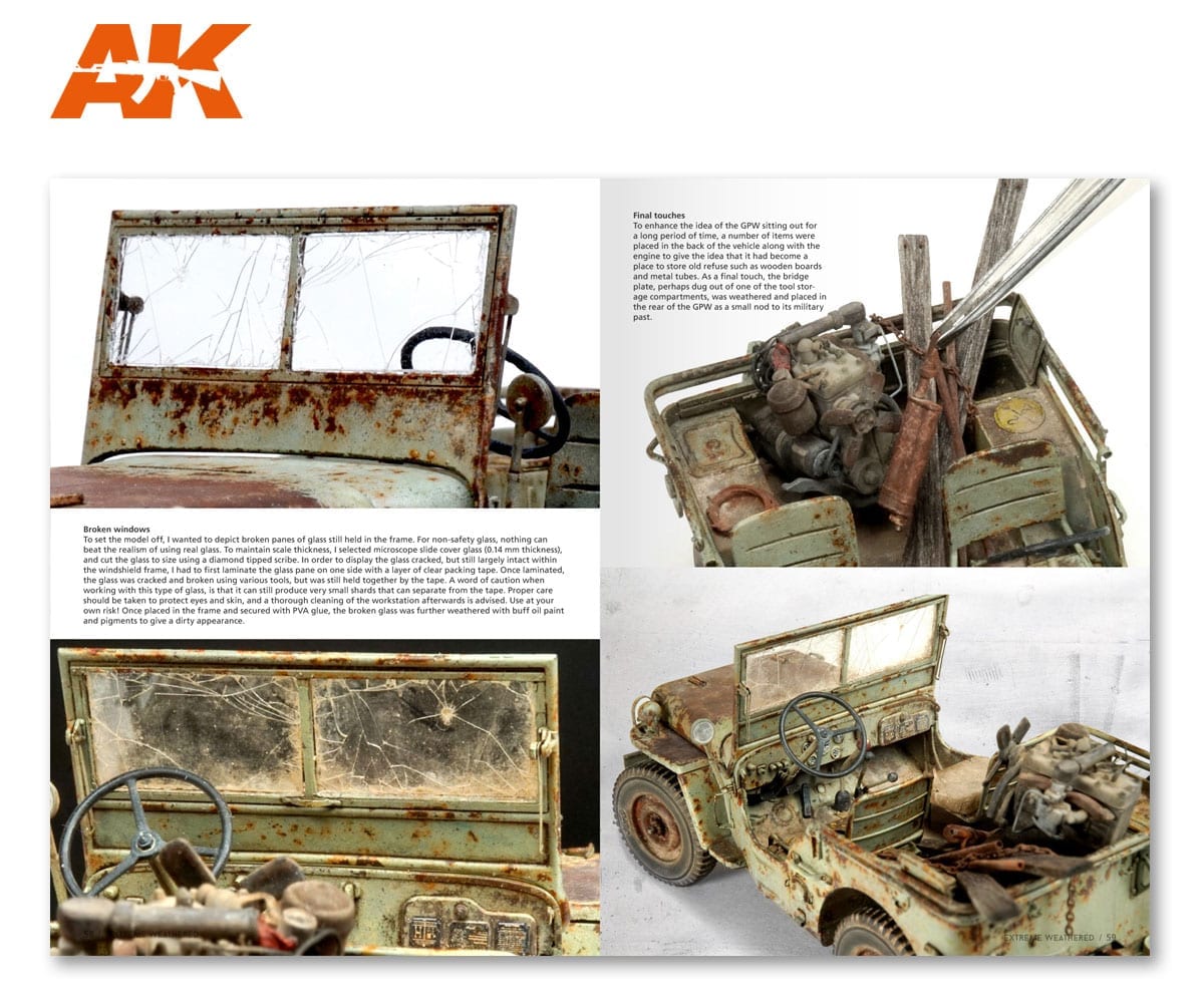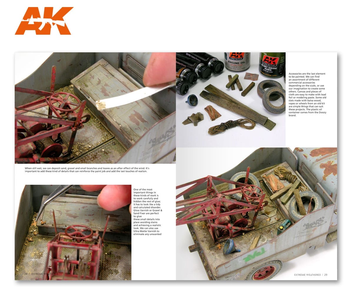 Il realismo è solitamente l’obiettivo che noi, come modellisti, vogliamo sempre raggiungere. Tecniche, innovazione, storia e fantasia per realizzare un’opera d’arte in plastica o resina. Diventa impegnativo perché dobbiamo tenere a mente i numerosi dettagli che dobbiamo aggiungere, ma questi piccoli dettagli sono la chiave per dare al nostro modello il suo aspetto realistico. Questo libro mostra come questo realismo può essere raggiunto nella modellazione in scala. Segui questi artisti di talento attraverso un viaggio da modello alla vita reale. Diviso in articoli passo passo che mostrano tecniche ben note o tecniche specifiche utilizzate solo su un singolo modello. Extreme Reality è un libro di capolavori ed è pensato per tutti noi che ci divertiamo e amiamo questo grande hobby, aiutandoti a costruire i tuoi modelli ma offrendo anche la possibilità di raccontare una storia.