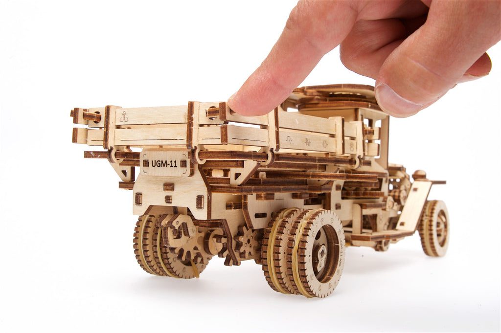 Il Camion UGM-11 rappresenta la nuova generazione dei nostri modelli meccanici. Questo è un modello che potrebbe richiedere più di un’ora per essere completato, ma il risultato merita assolutamente lo sforzo, per gli appassionati di meccanica.
