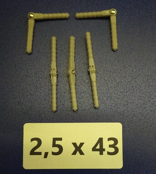 misure: ø mm2,5 x mm 43 quantità 5 pezzi con perno metallico, per parti mobili aerei