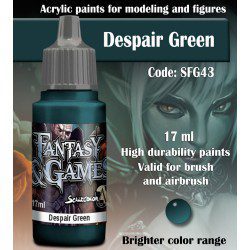 COLORE SCALE75 CODICE SFG43 - Despair green - CONFEZIONE DA 17 ml Scale75 serie Fantasy & game sono nuovi colori specifici per la realizzazione di miniature. In boccetta plastica, contenuto 17ml. Il colore Scale75 si caratterizza per la sua forte brillantezza e per la ricerca cromatica unica nel suo genere. Il colore risulta molto denso, va diluito con il suo solvente specifico SCALE75. (non ad acqua.) Grazie al suo pigmento Ultrafine permette una stesura perfetta sia ad aerografo e sia a pennello. Le nostre spedizioni sono tutte tracciate e si caratterizzano da imballi ben protetti e anonimi.