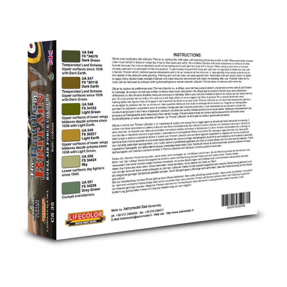 Set 6x colori acrilici Lifecolor 22ml per aerei inglesi: The Battle of Britain CS35