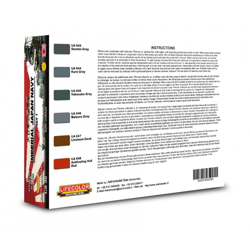 Set 6x colori acrilici Lifecolor 22ml per navi giapponesi: Imperial Japan Navy WWII Set #1 CS36