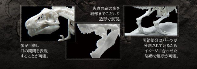 Usando LIMEX per i modelli in plastica di uno scheletro di dinosauro che si assemblano da soli, questi oggetti ti permettono di avere un’idea reale dell’esistenza dei fossili da una prospettiva senza precedenti di consistenza e peso. Hanno una superficie asciutta, simile al gesso e una superficie opaca con una leggera lucentezza. Inoltre, poiché contengono molti minerali, si sentono più pesanti nella mano rispetto alla plastica convenzionale. Questi modelli di scheletro in plastica sono stati sottoposti a ripetute verifiche accademiche alla ricerca di una forma autentica e sono dotati di articolazioni mobili e bocche che possono essere aperte.