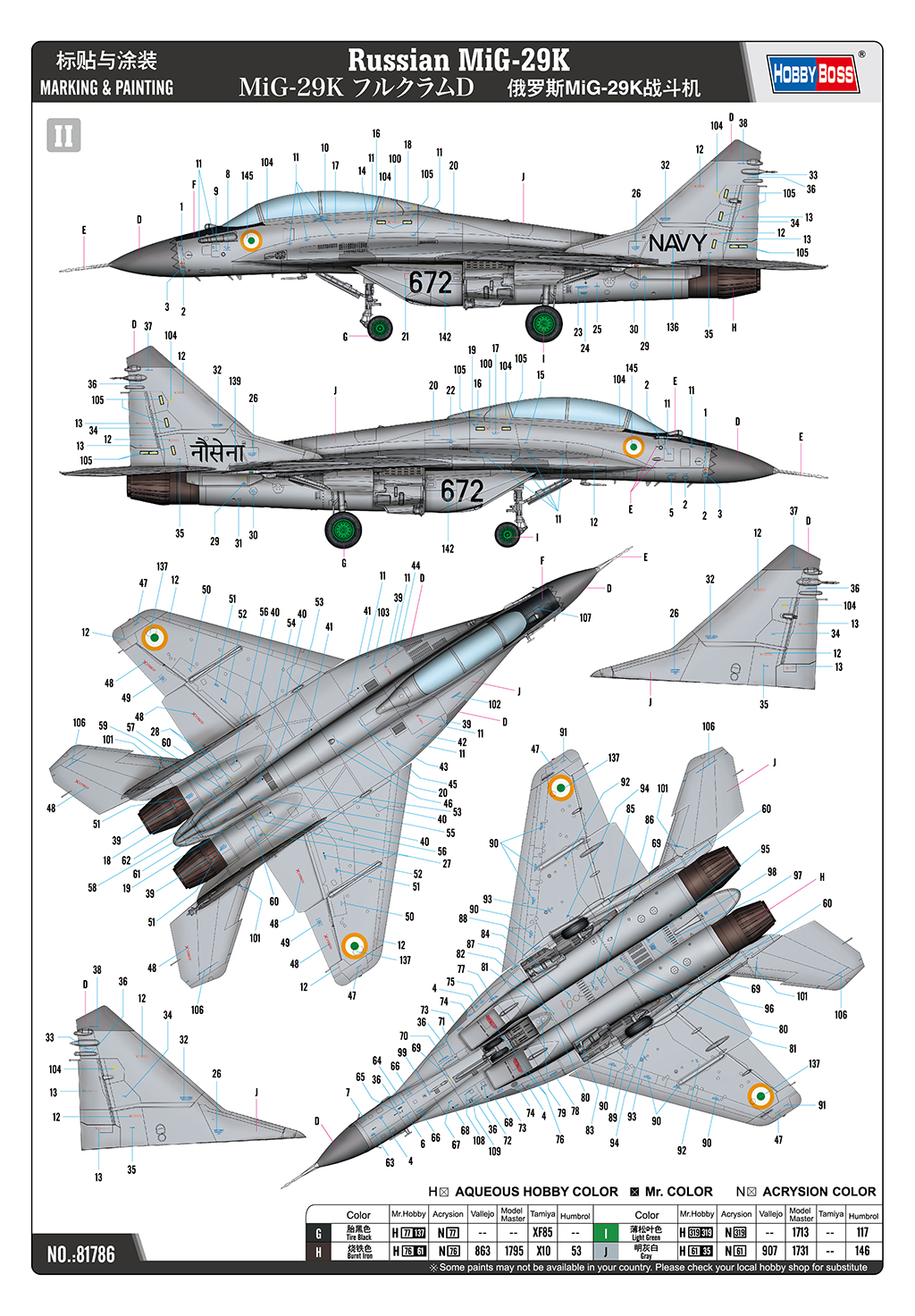 Hobby Boss, 81786, Russian MiG-29K con colla inclusa, caccia imbarcato, scala 1:48