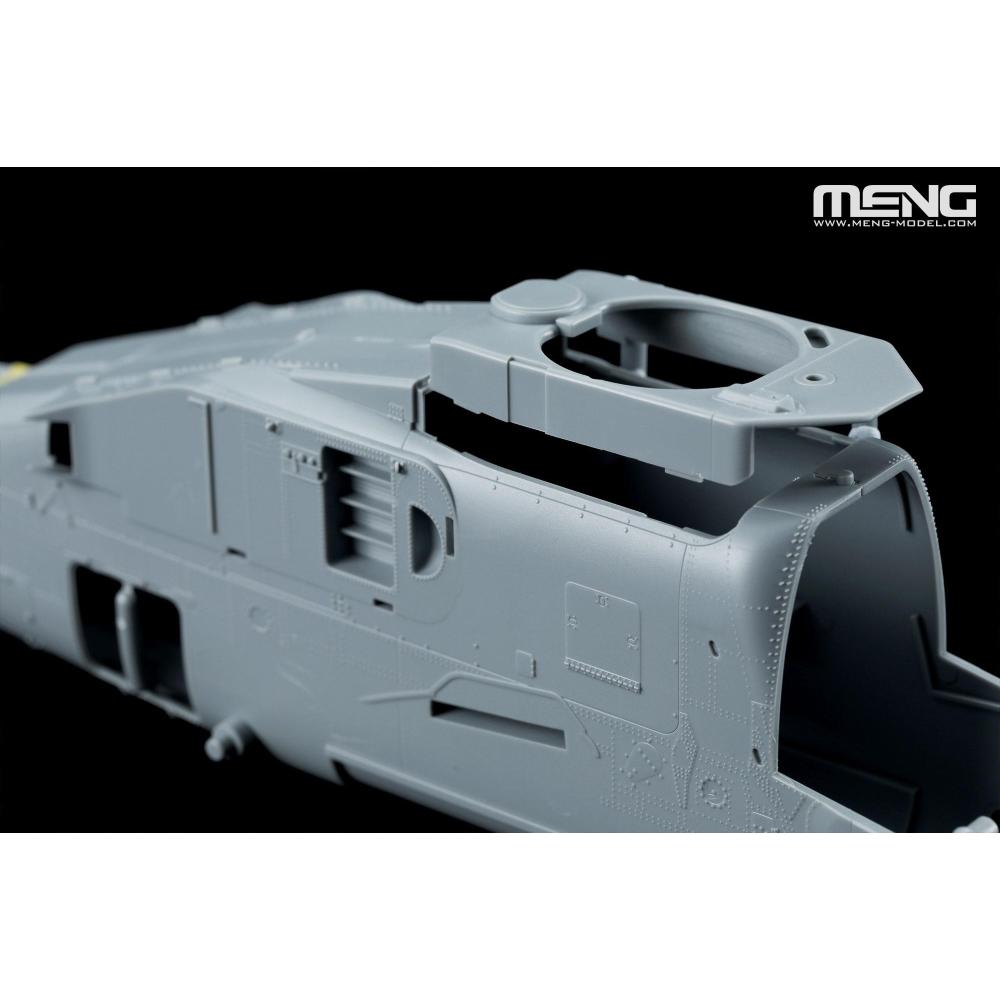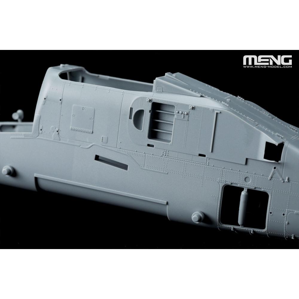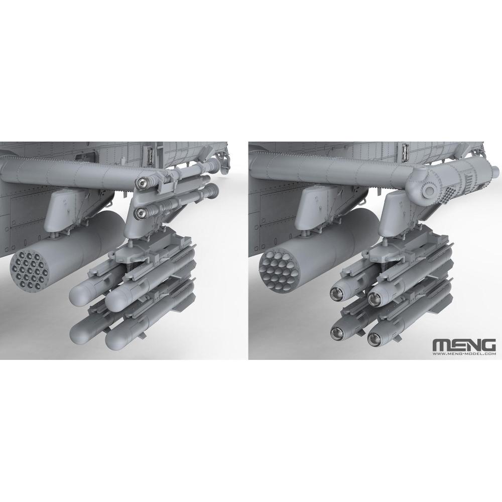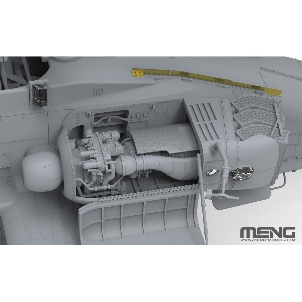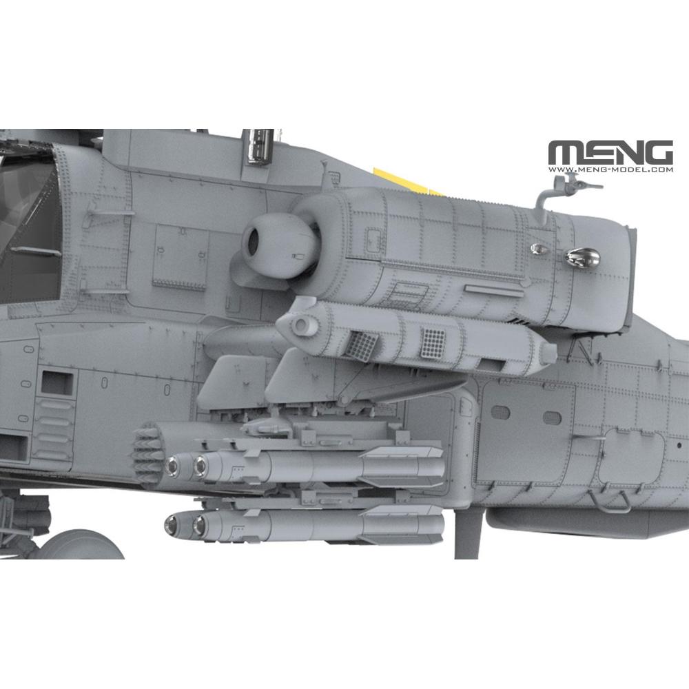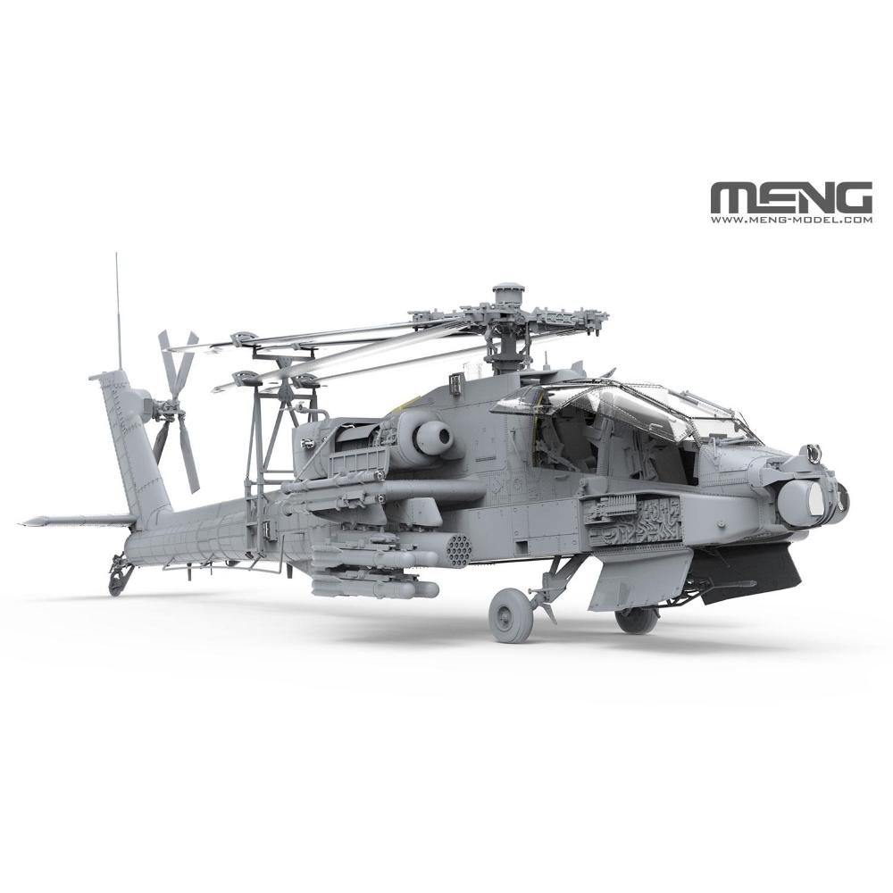 Il kit Meng Model QS004, ufficialmente licenziato da Boeing, riproduce l’elicottero in scala 1/35 con un modello finito lungo 504mm, largo 425mm e alto 157mm. Tra i contenuti spiccano le parti in fotoincisione pre-tagliate di precisione, le maschere per la verniciatura e tre schemi di livrea. Le pale del rotore principale sono assemblabili in posizione aperta o ripiegata, il mitragliatrice può ruotare come sul velivolo reale e sono inclusi missili AGM-114, lanciatori M261, missili FIM-92 e sistemi AN/AAQ-24. Un kit di modellismo statico impegnativo e straordinariamente dettagliato.