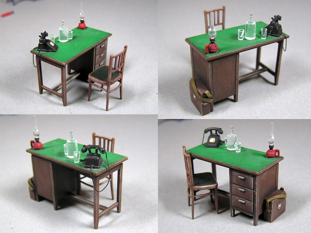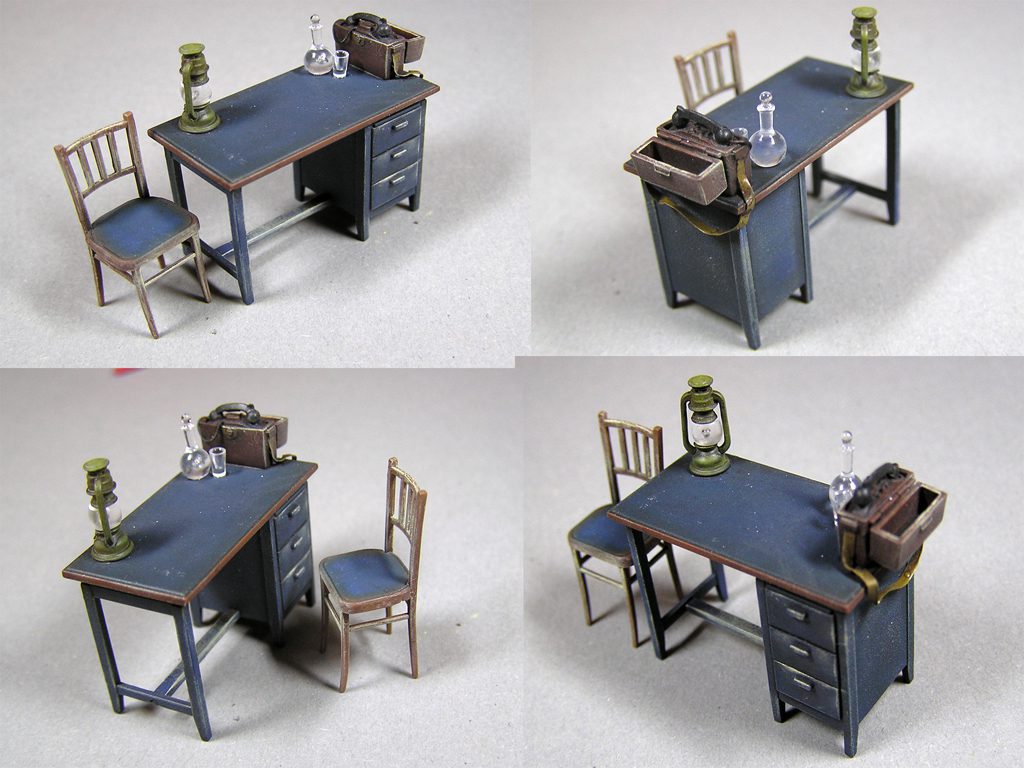 Scatola con mobili ed accessori per ricreare lo scenario di un ufficio in scala 1/35