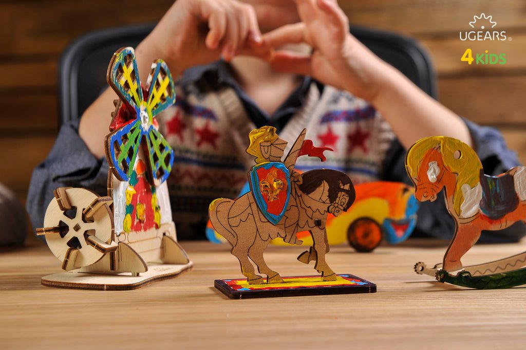 Simpatico: con l’aiuto della fantasia, dell’immaginazione e del talento creativo di artisti giovani (e adulti) ogni modello da colorare UGEARS ottiene un aspetto unico e bellissimo, che manterrà il tuo spirito in cima alla tua scrivania.