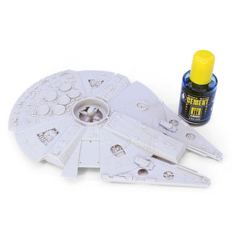 Tieni insieme le parti, applica il cemento al giunto e lascialo penetrare nello spazio per azione capillare. Il suo colore blu risalta sulla superficie di plastica, mostrando chiaramente dove viene applicato. Questo ti consente anche di essere sicuro che l’intero giunto sia coperto e faciliterà il processo di levigatura. Si asciuga completamente in 10 minuti.
