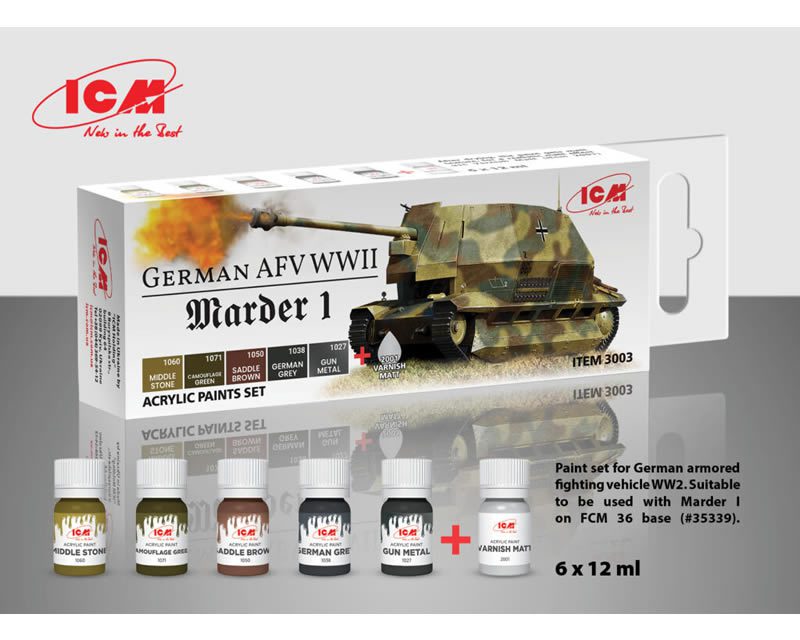 1 set / 6 jars / each 12 ml / 5 colors + varnish matt / water-based acrylic paint.