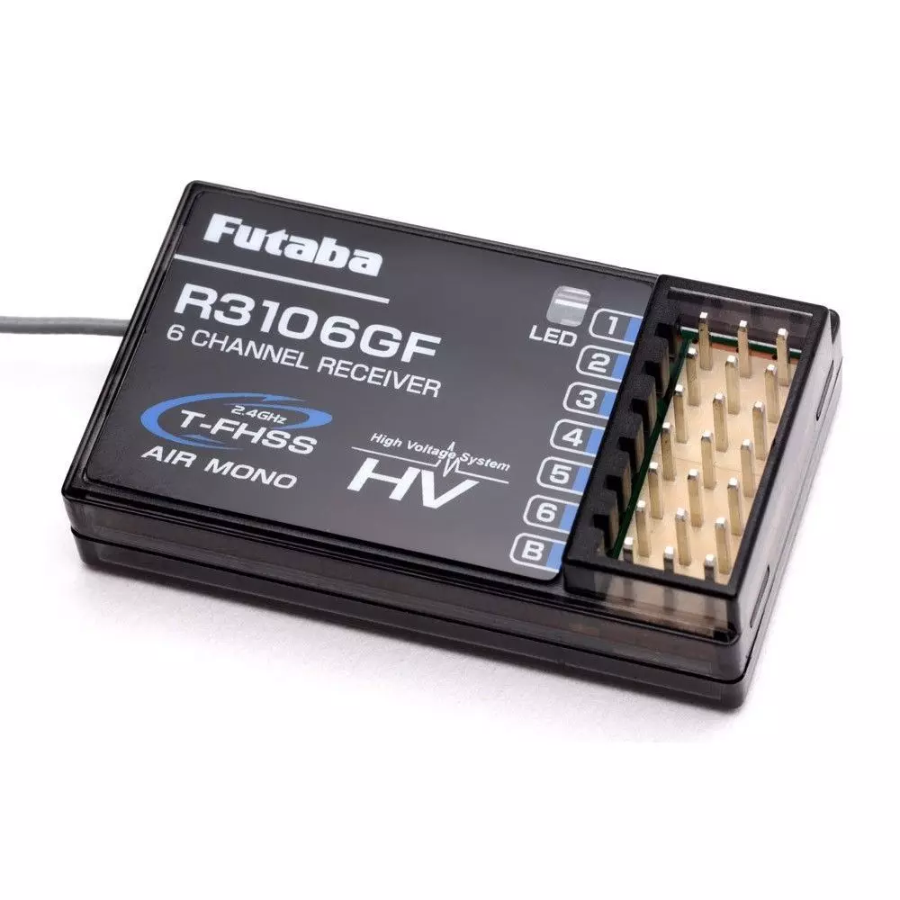 Ricevitore a 6 canali Futaba con codificaT-FHSS Air per aeromodelli di piccole e medie dimensioni, specifico per trasmittenti Futaba T-FHSS.