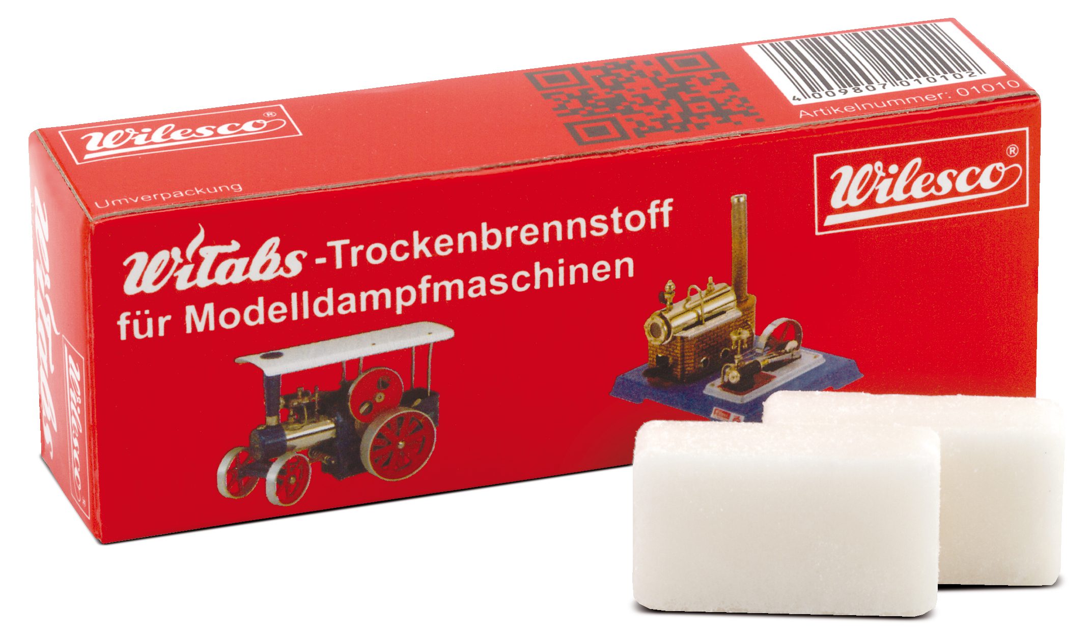 The dry-fuel tablets WiTabs are necessary for the heating of the engines. One box contains 12 tablets. The average burning duration per tablet is abt. 10 minutes.